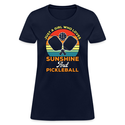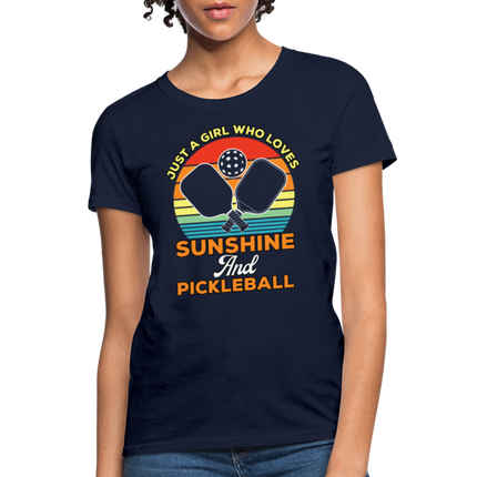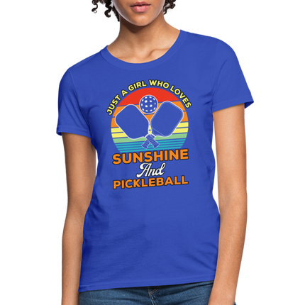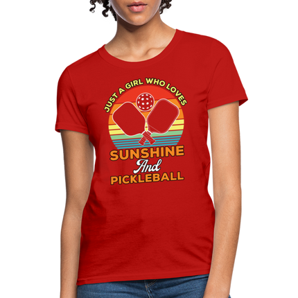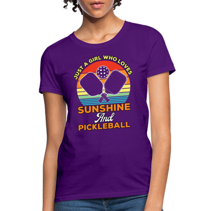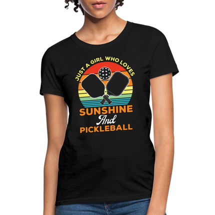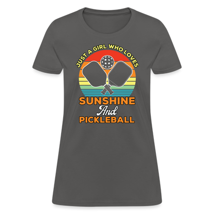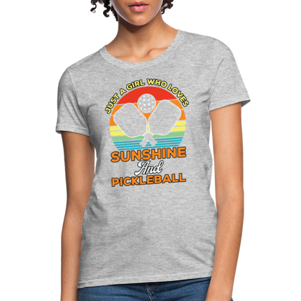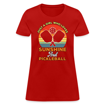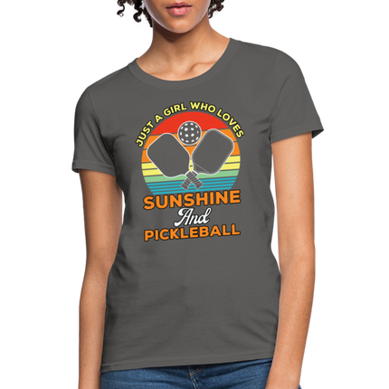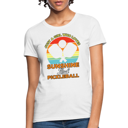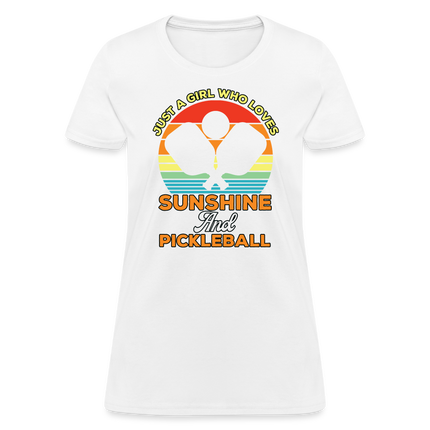 This Just A Girl Who Loves Sunshine and Pickleball Women's Contoured T-Shirt is Contoured and Side Seamed for a Feminine Fit – RUNS SMALL