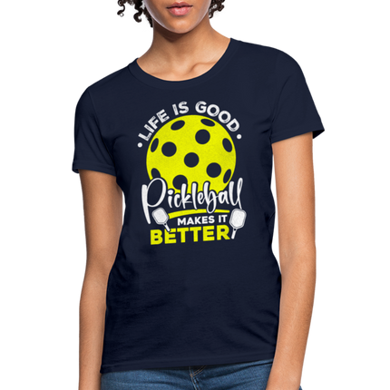 This Life Is Good Pickleball Makes It Better Women's Contoured T-Shirt is Contoured and Side Seamed for a Feminine Fit – RUNS SMALL