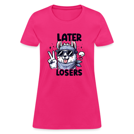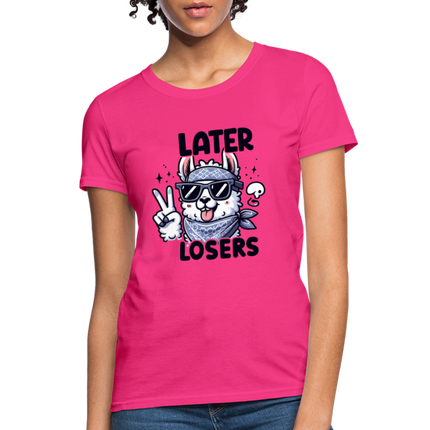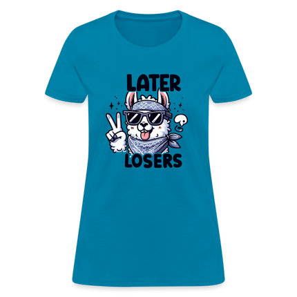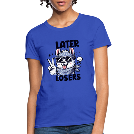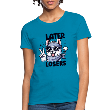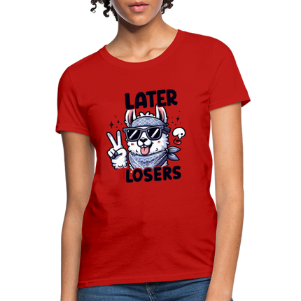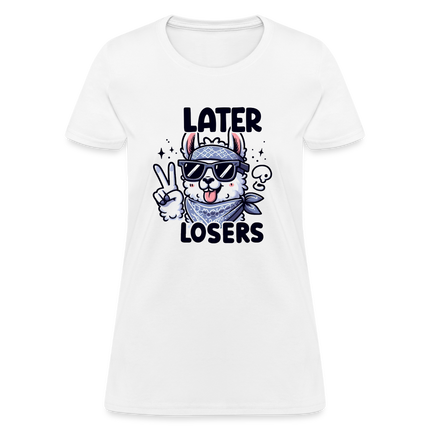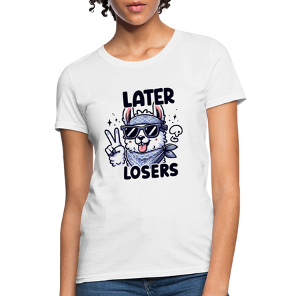 This Llama says Later Losers Women's Contoured T-Shirt is Contoured and Side Seamed for a Feminine Fit – RUNS SMALL