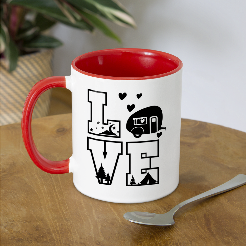 Introducing the "Love Camping Coffee Mug" - a delightful way to express your passion for camping. This coffee mug features the word "Love" with the letter O cleverly designed as a camper, adding a charming touch to your morning routine. Crafted for both style and function, it's perfect for sipping your favorite brew while celebrating your love for the great outdoors. The design resonates with fellow camping enthusiasts, creating a sense of shared adventure and appreciation for nature. Elevate your coffee experience while expressing your love for camping with our "Love Camping Coffee Mug."