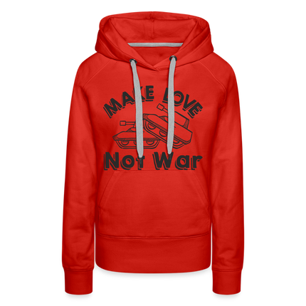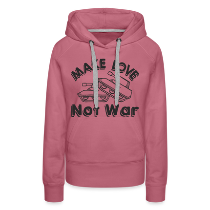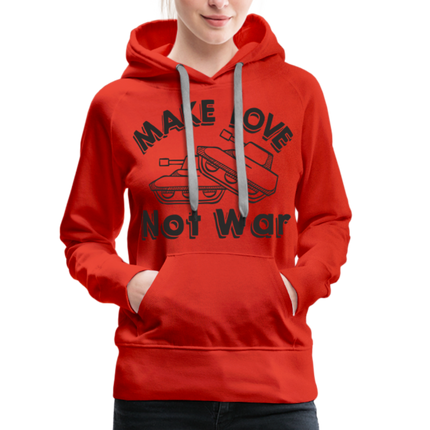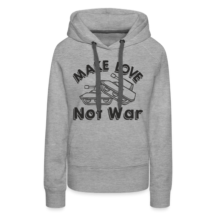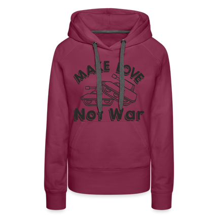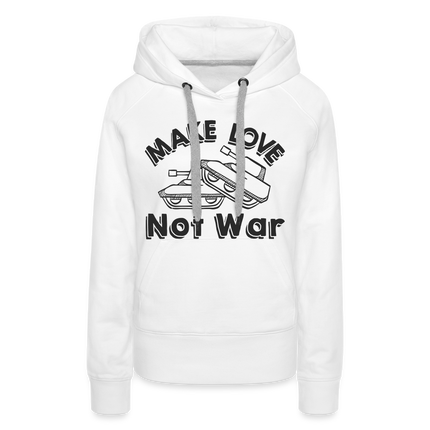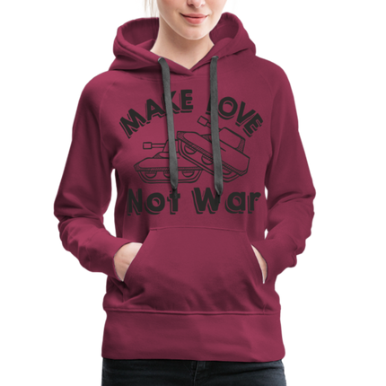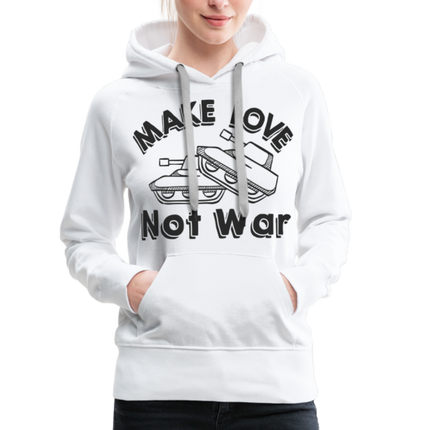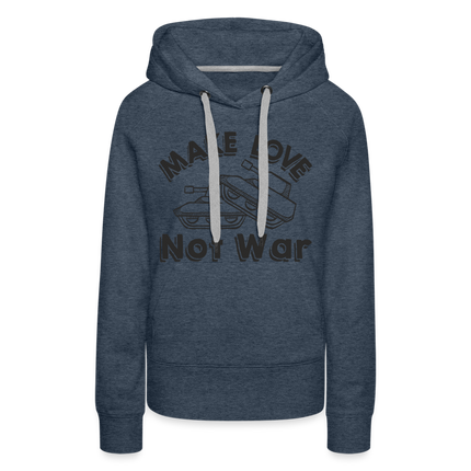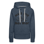 This Make Love Not War Women’s Premium Hoodie has a Slimmer Fit – Consider One Size Up for Normal Fit.