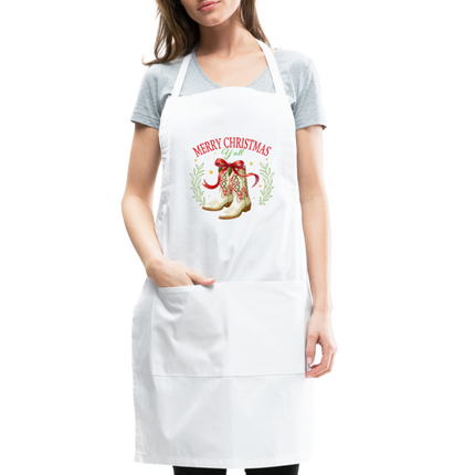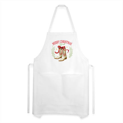 Tags: Christmas apron, holiday cooking, Merry Christmas apron, country Christmas decor, western-themed apron, holiday hostess gift, festive baking, southern Christmas, adjustable apron, Christmas kitchen accessory.