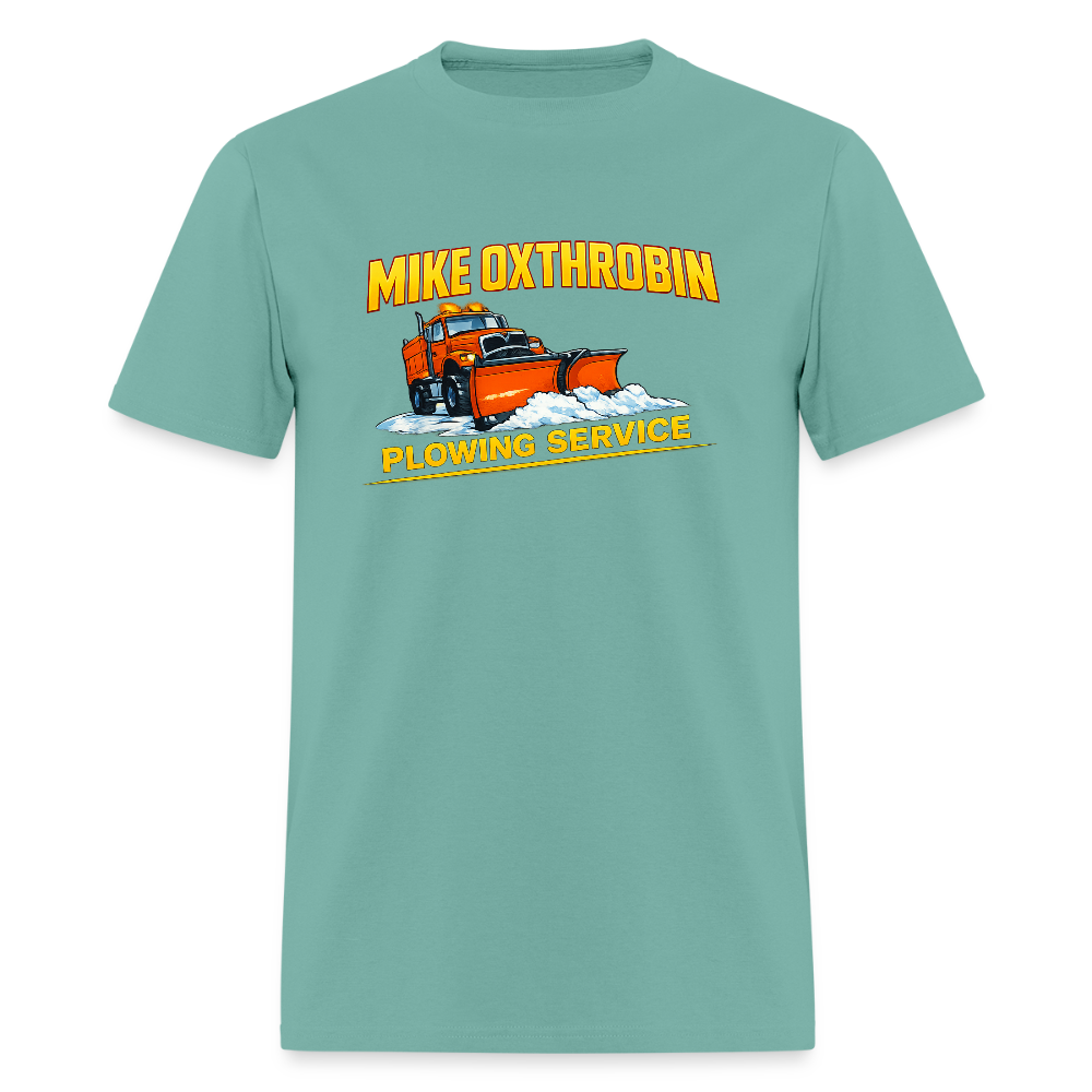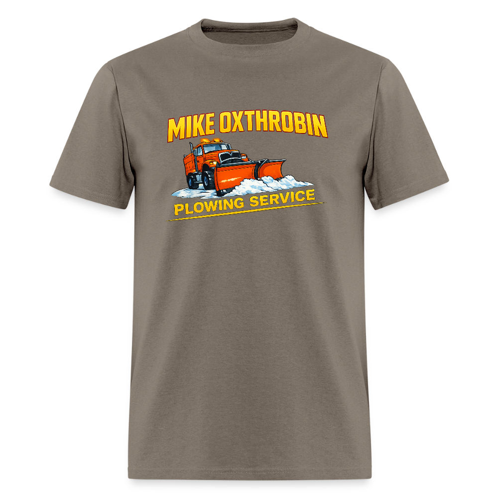 If you're into plowing through the cold with a smile, this hilarious Mike Oxthrobin Plowing Service T-shirt is right up your alley. Featuring a cartoon snow plow and bold text that reads "Mike Oxthrobin Plowing Service," this adult humor tee is built for laughs, double-takes, and those who know how to handle a little winter mischief. Whether you're clearing snow or just breaking the ice with friends, the joke lands every time.
