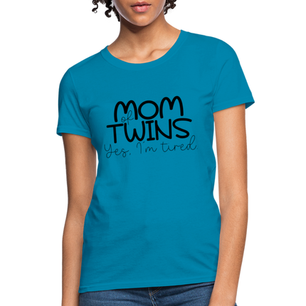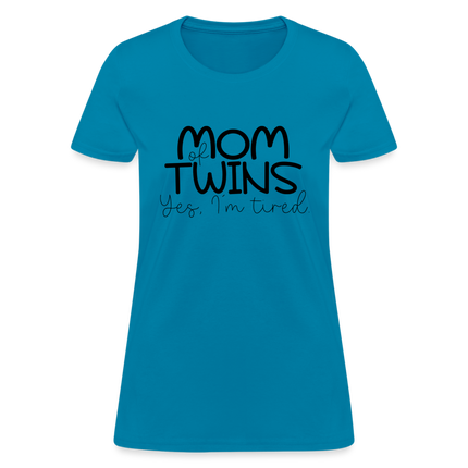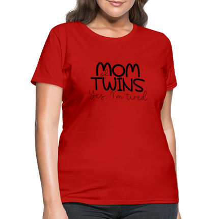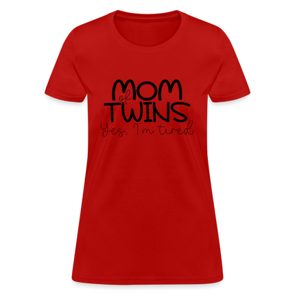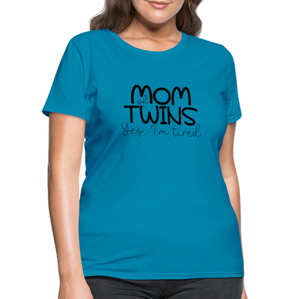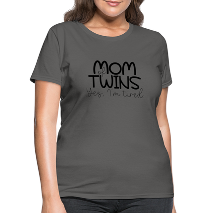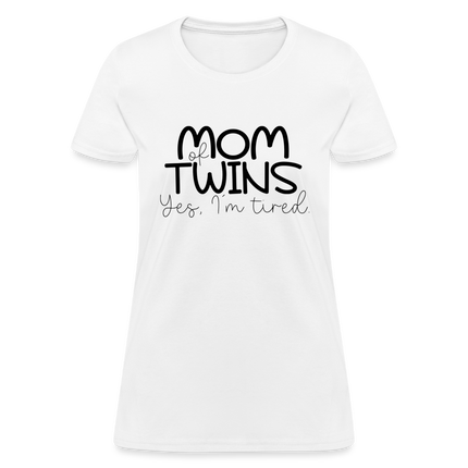 This Mom of Twins Yes I'm Tired Women's Contoured T-Shirt is Contoured and Side Seamed for a Feminine Fit – RUNS SMALL