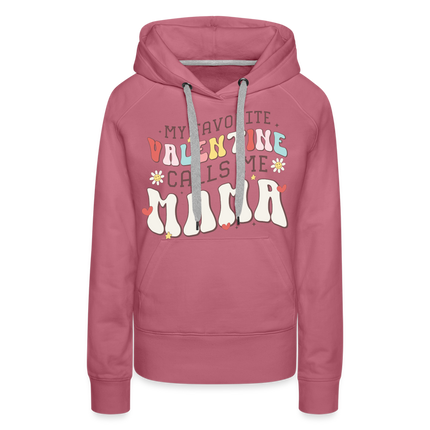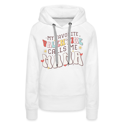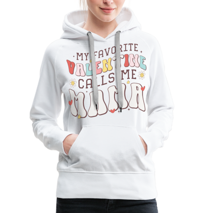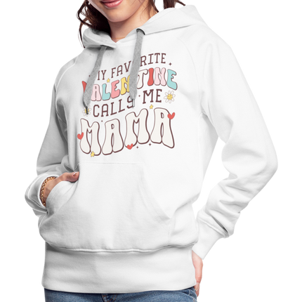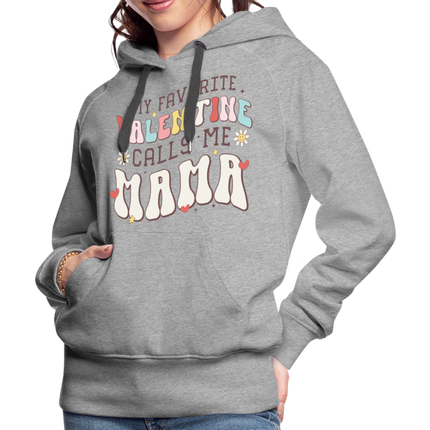This My Favorite Valentine Calls Me Mama : Women’s Premium Hoodie has a Slimmer Fit – Consider One Size Up for Normal Fit.