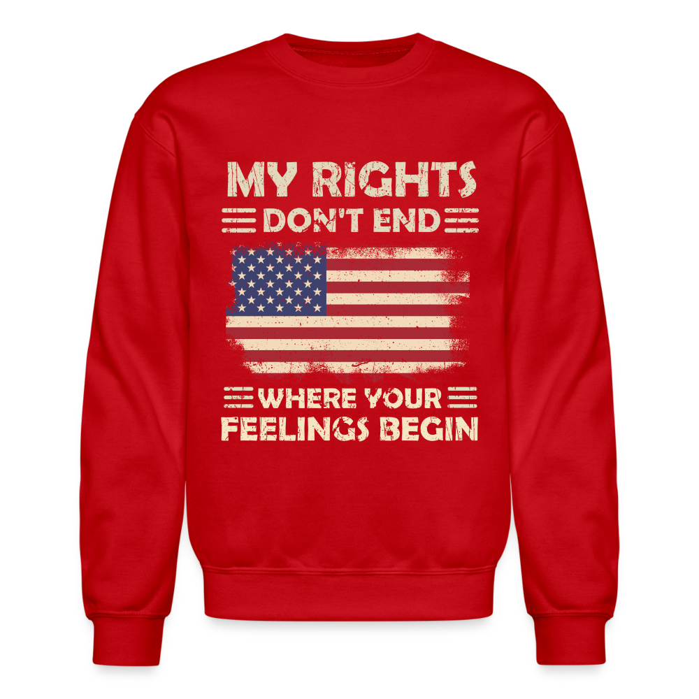 Emblazoned with the impactful message, "My Rights Don't End Where Your Feelings Begin," accompanied by the iconic American flag, this sweatshirt is more than just apparel; it's a symbol of your unwavering belief in freedom of expression.