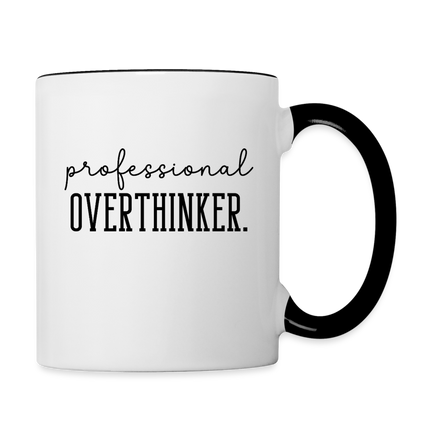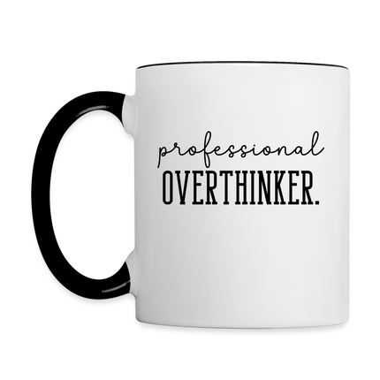 Tags: overthinker coffee mug, funny coffee mug, sarcastic mug, professional overthinker, humorous mugs, gift for overthinkers, witty coffee mug, stress-relief mug, daily caffeine companion, quirky coffee mug.