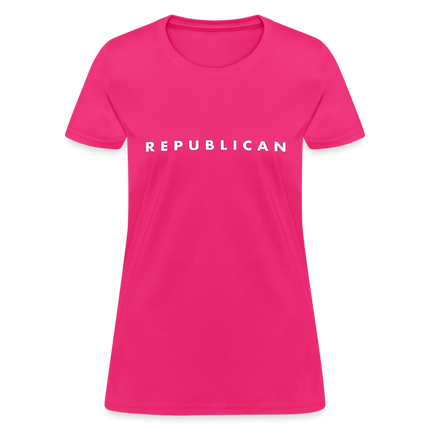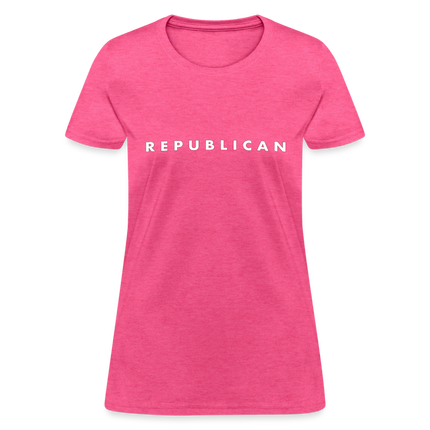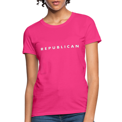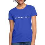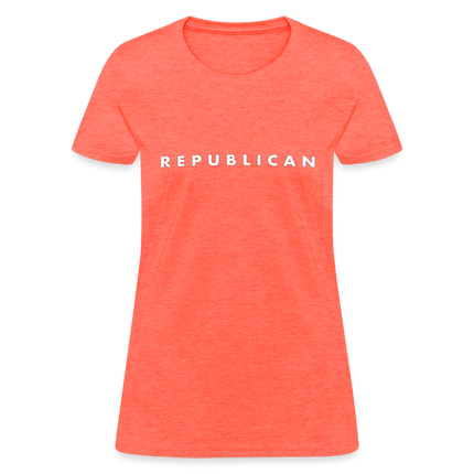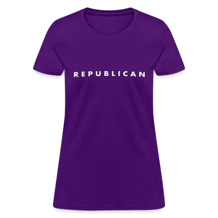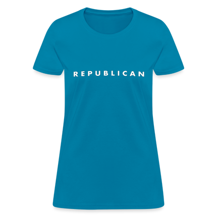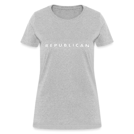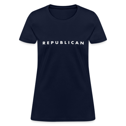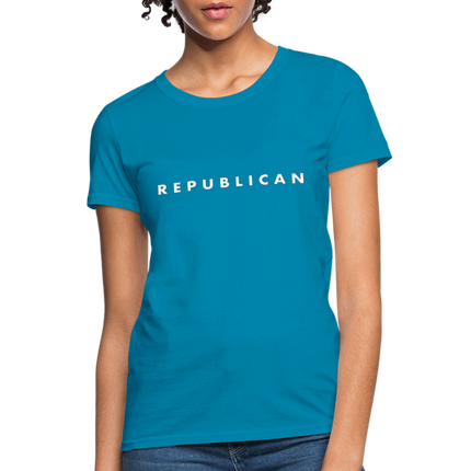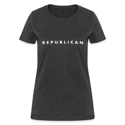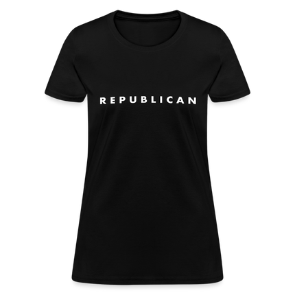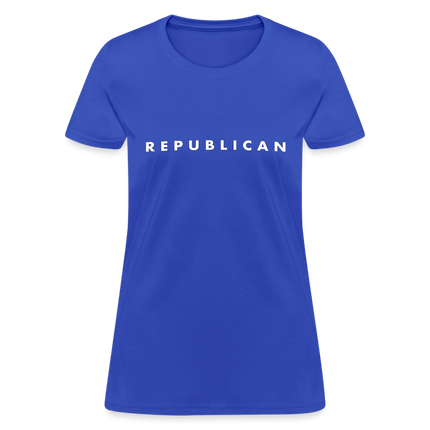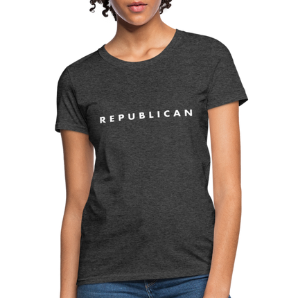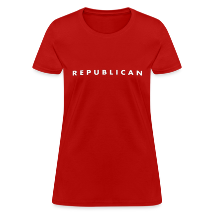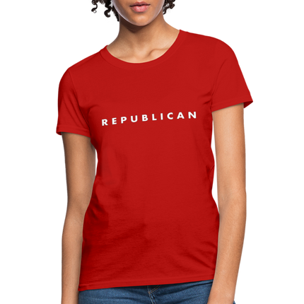 The "Republican Women's T-Shirt" is a powerful expression of political identity and affiliation tailored specifically for women who support the Republican Party. With its bold white text spelling out "Republican," this shirt makes a clear statement about your political beliefs.