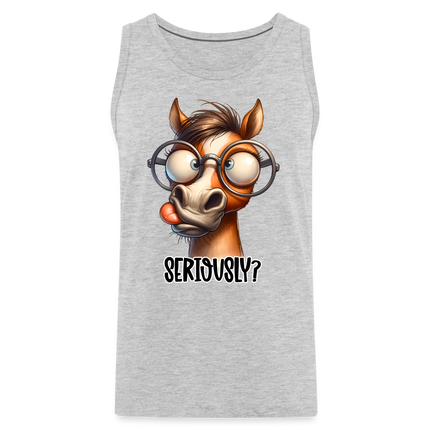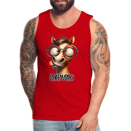 Bring some humor and style to your wardrobe with the "Seriously?" Men's Premium Tank Top (Funny Horse). Perfect for those who love a good joke and a casual, comfortable fit, this tank top is a must-have for any fun-loving individual. Treat yourself or someone special to this delightful piece today!