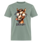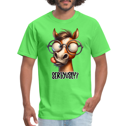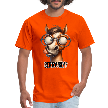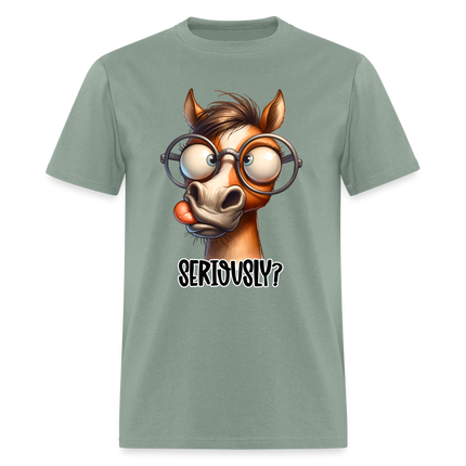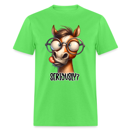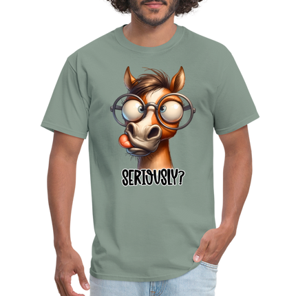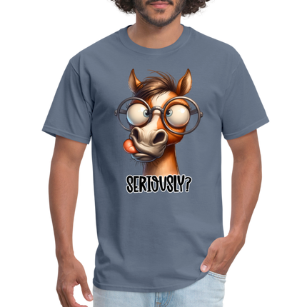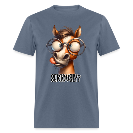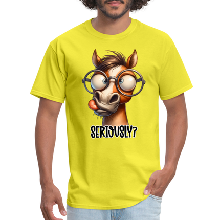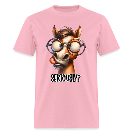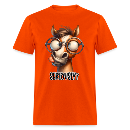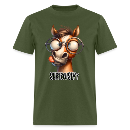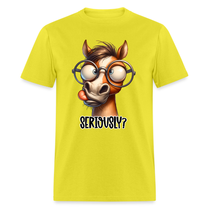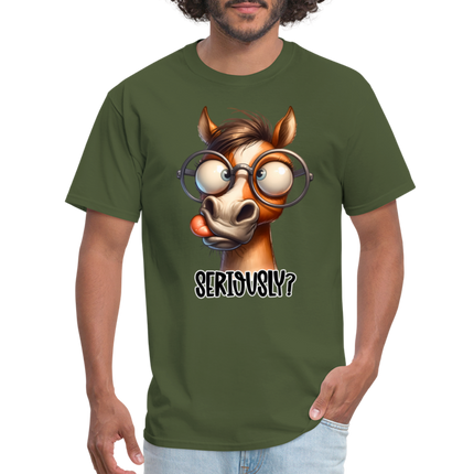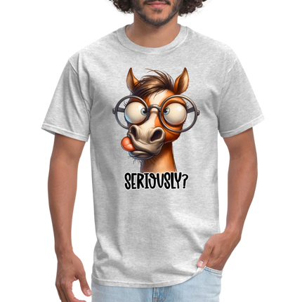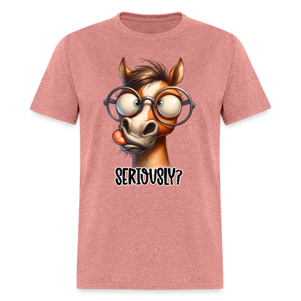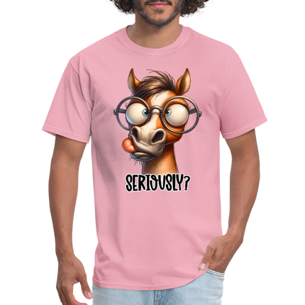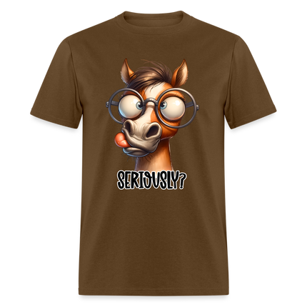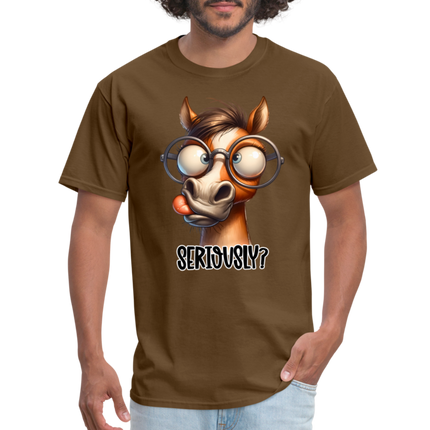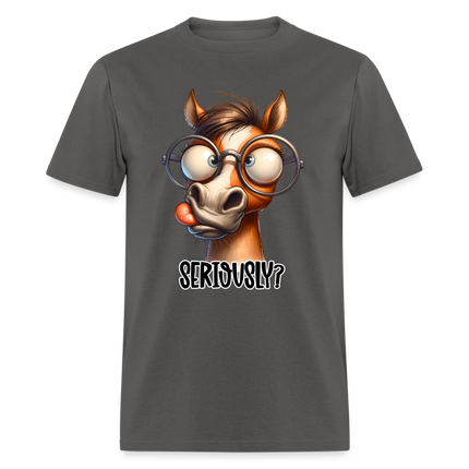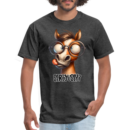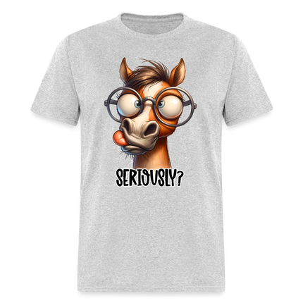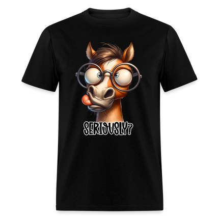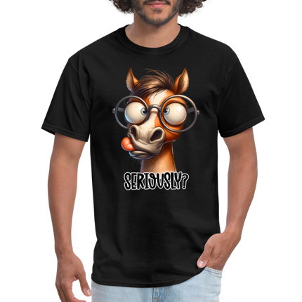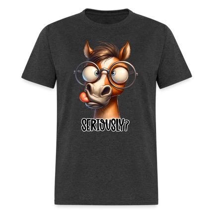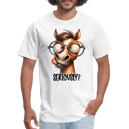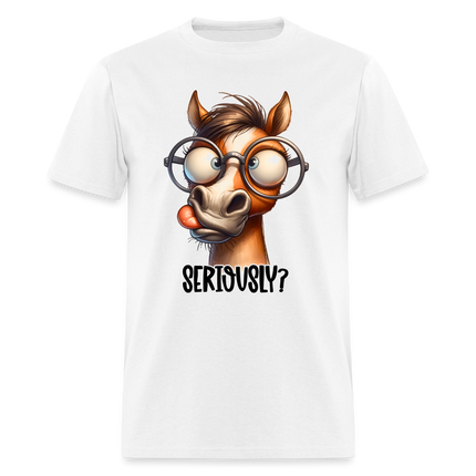 Showcase your playful side with the "Seriously?" T-Shirt featuring a cute and funny horse graphic. Perfect for those who love to inject humor into their daily lives.