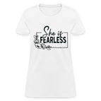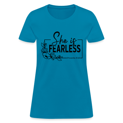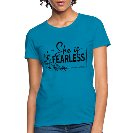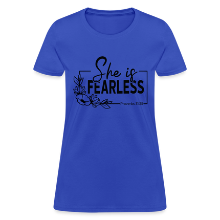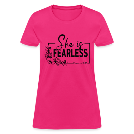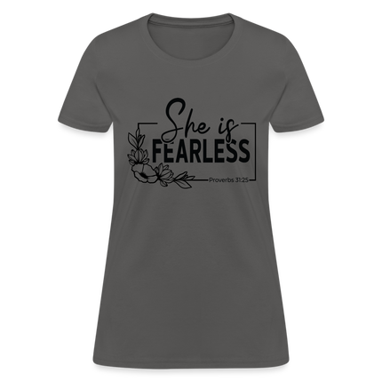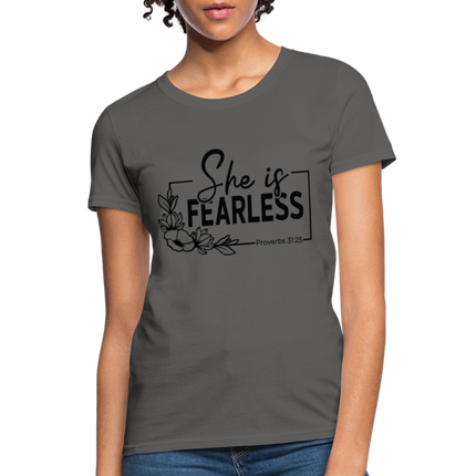 This She Is Fearless Women's T-Shirt (Proverbs 31:25) is Contoured and Side Seamed for a Feminine Fit – RUNS SMALL