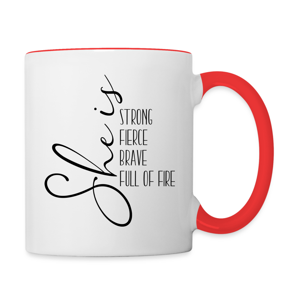 Introducing the "She Is Strong Fierce Brave Full Of Fire Coffee Mug" - a motivational and empowering way to start your day with a dose of inspiration. This coffee mug features the uplifting message "She Is Strong Fierce Brave Full Of Fire," celebrating the inner strength and determination of strong women. Crafted for both style and function, it's perfect for sipping your favorite brew while embracing the powerful message. The design resonates with those who appreciate the resilience and spirit of strong women, creating a sense of shared empowerment. Elevate your coffee routine and celebrate the strength within with our "She Is Strong Fierce Brave Full Of Fire Coffee Mug."