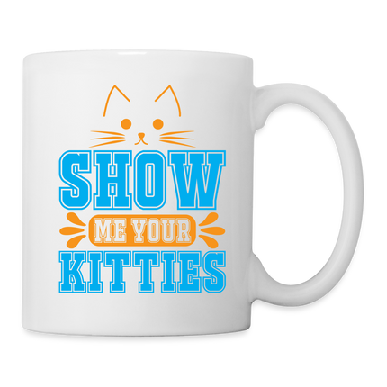 Introducing our "Show Me Your Kitties" Coffee Mug – the purr-fect way to enjoy your favorite brew with a touch of feline charm and playful humor!