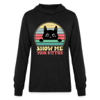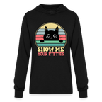 Behold the purr-fect blend of coziness and charm – our "Show Me Your Kitties" Long Sleeve Hoodie Shirt! This delightful hoodie features the playful text "Show Me Your Kitties" accompanied by an adorable black kitty against a vintage-colored background.