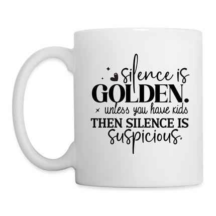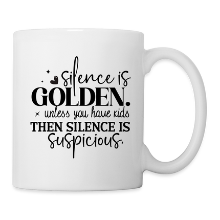 Introducing the "Silence is Golden Unless You Have Kids" Coffee Mug – a delightful and humorous addition to any parent's daily routine! This mug features the funny and relatable phrase, "Silence is Golden Unless You Have Kids, Then Silence is Suspicious," capturing the essence of parenthood with every sip.