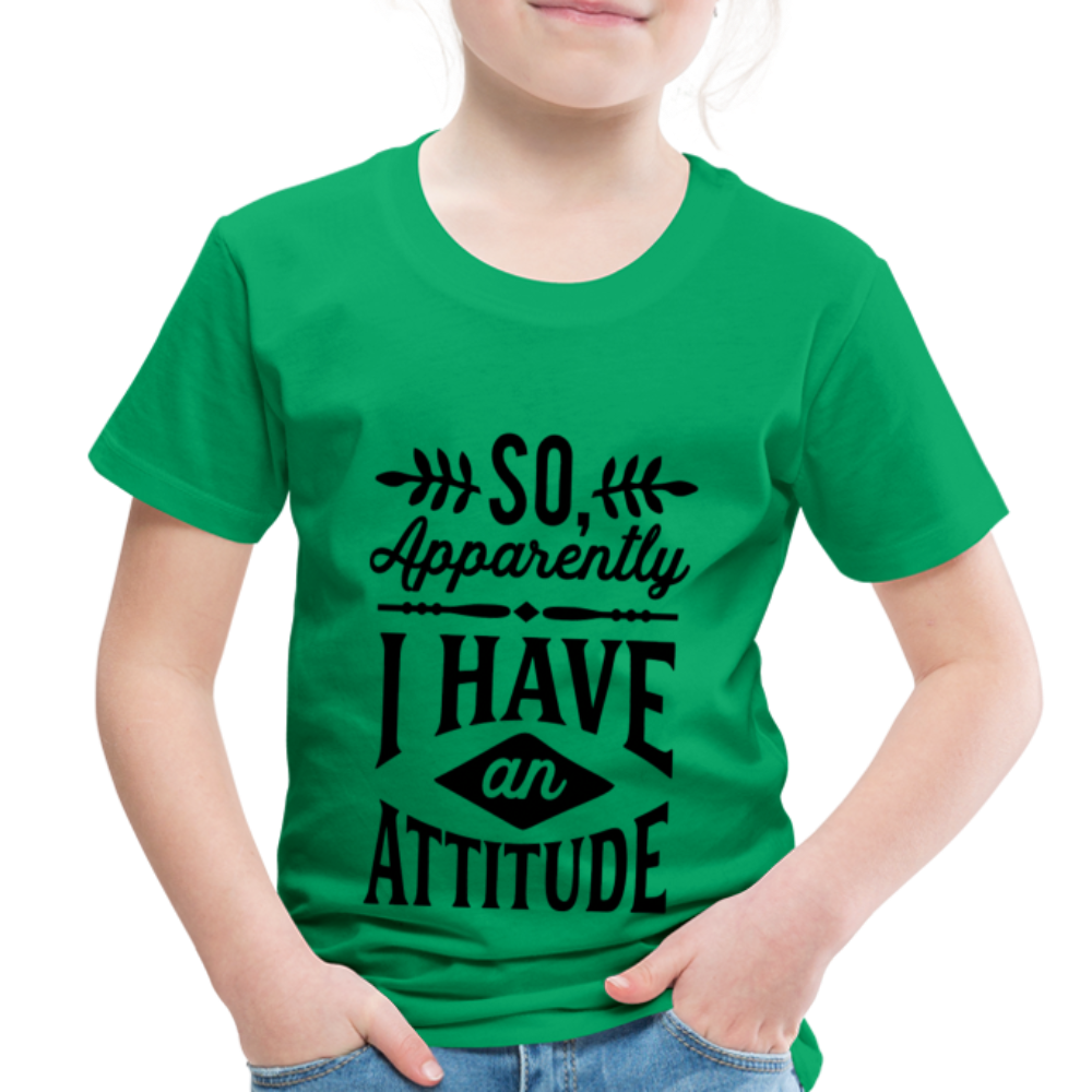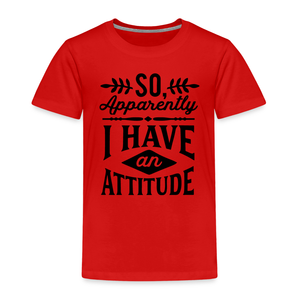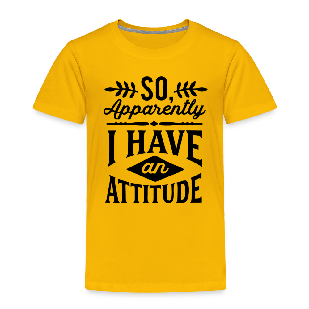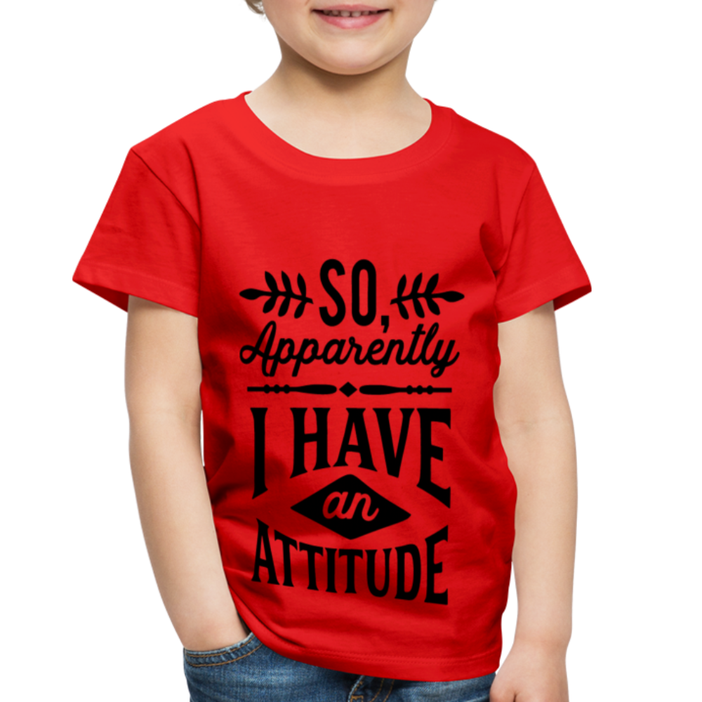 Introducing the "So Apparently I Have An Attitude Toddler Premium T-Shirt" - a cute and playful way to acknowledge that even toddlers can sometimes display a strong or assertive demeanor. This premium toddler t-shirt playfully suggests that your little one might have an attitude of their own. Designed for both comfort and quality, the fabric ensures your toddler feels at ease while sporting this lighthearted message. The sentiment resonates with parents who understand the spirited nature of toddlers, creating a sense of shared understanding and humor. Elevate your toddler's style while playfully celebrating their unique personality with our "So Apparently I Have An Attitude Toddler Premium T-Shirt."