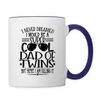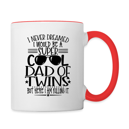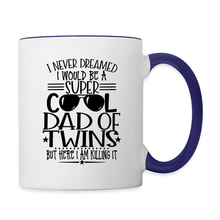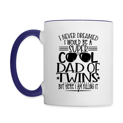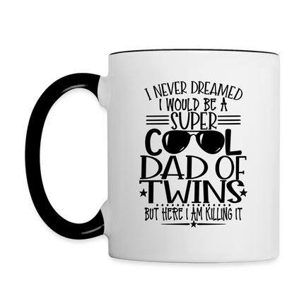 Introducing the "Super Cool Dad of Twins Coffee Mug" - a heartwarming and prideful addition to your morning routine. This coffee mug celebrates the coolness and love of being a dad of twins with a powerful message: "I Never Dreamed I Would Be A Super Cool Dad Of Twins But Here I Am Killing It." Crafted for both style and function, it's perfect for sipping your favorite brew while embracing the unique journey of twin parenthood. The design resonates with fellow dads of twins, creating a sense of shared experiences and happiness. Elevate your coffee routine while celebrating the incredible role of being a super cool dad of twins with our "Super Cool Dad of Twins Coffee Mug."