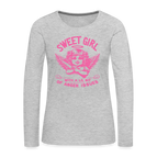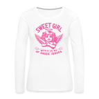Introducing our "Sweet Girl With A Lil Bit of Anger Issues" Women's Premium Long Sleeve T-Shirt, a clever and humorous addition to your wardrobe that is sure to turn heads and spark conversations. This long sleeve tee isn't just about style; it's a playful expression of wit and sarcasm.