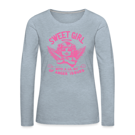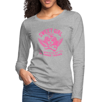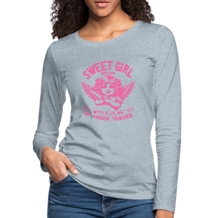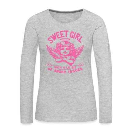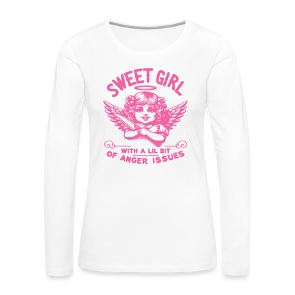 With its witty message and eye-catching imagery, our "Sweet Girl With A Lil Bit of Anger Issues" Women's Premium Long Sleeve T-Shirt is sure to be a standout piece in your wardrobe. Wear it proudly and let your playful side shine!