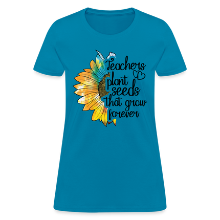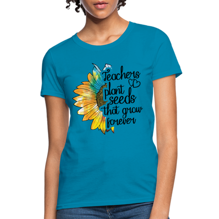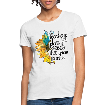 This Teachers Plant Seeds That Grow Forever Women's T-Shirt is Contoured and Side Seamed for a Feminine Fit – RUNS SMALL