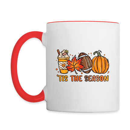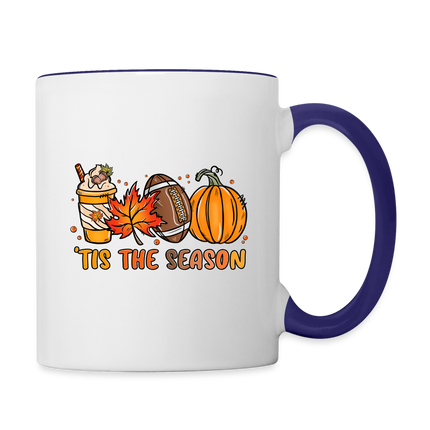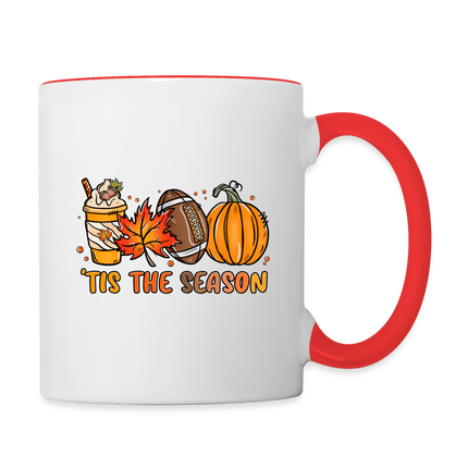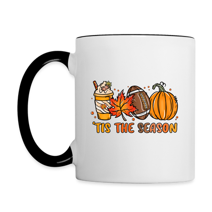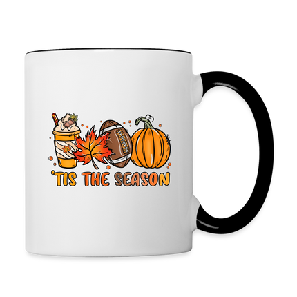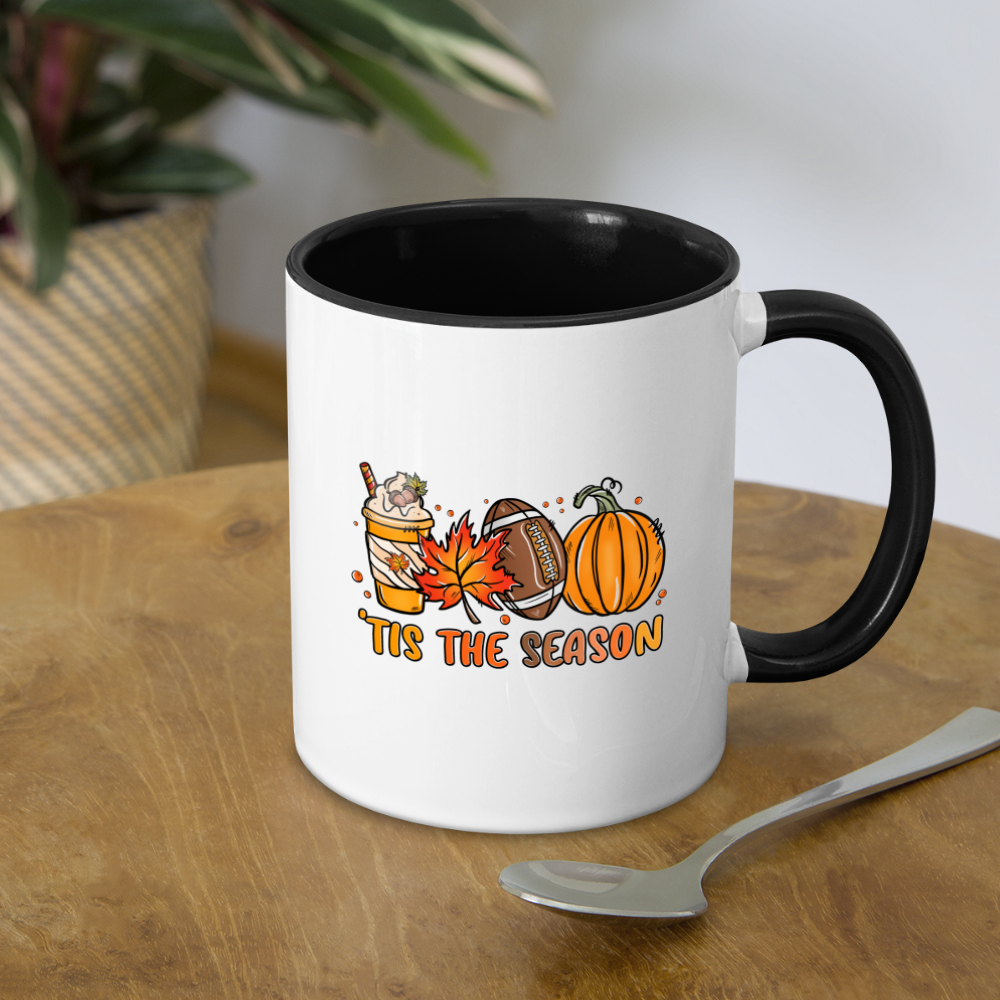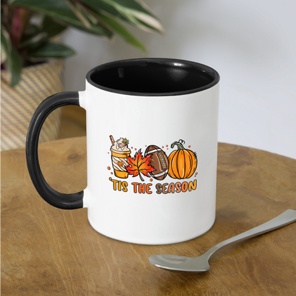 Its design evokes the warm and inviting spirit of autumn, making it an ideal companion for those chilly days when you want to wrap your hands around a comforting beverage. With "Tis The Season" gracing its surface, it's a subtle reminder of the joys that come with the changing seasons. Whether you're a football enthusiast or simply relish the flavors and aromas of fall, this coffee mug is an excellent choice to infuse a bit of seasonal charm into your daily routine.