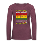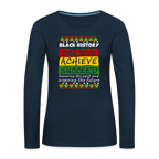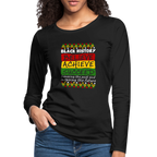 Introducing our Black History Women's Premium Long Sleeve T-Shirt, a timeless blend of style and significance. This elegant shirt carries a meaningful message: "Black History, Believe, Achieve, Succeed, Honoring the past and inspiring the future."